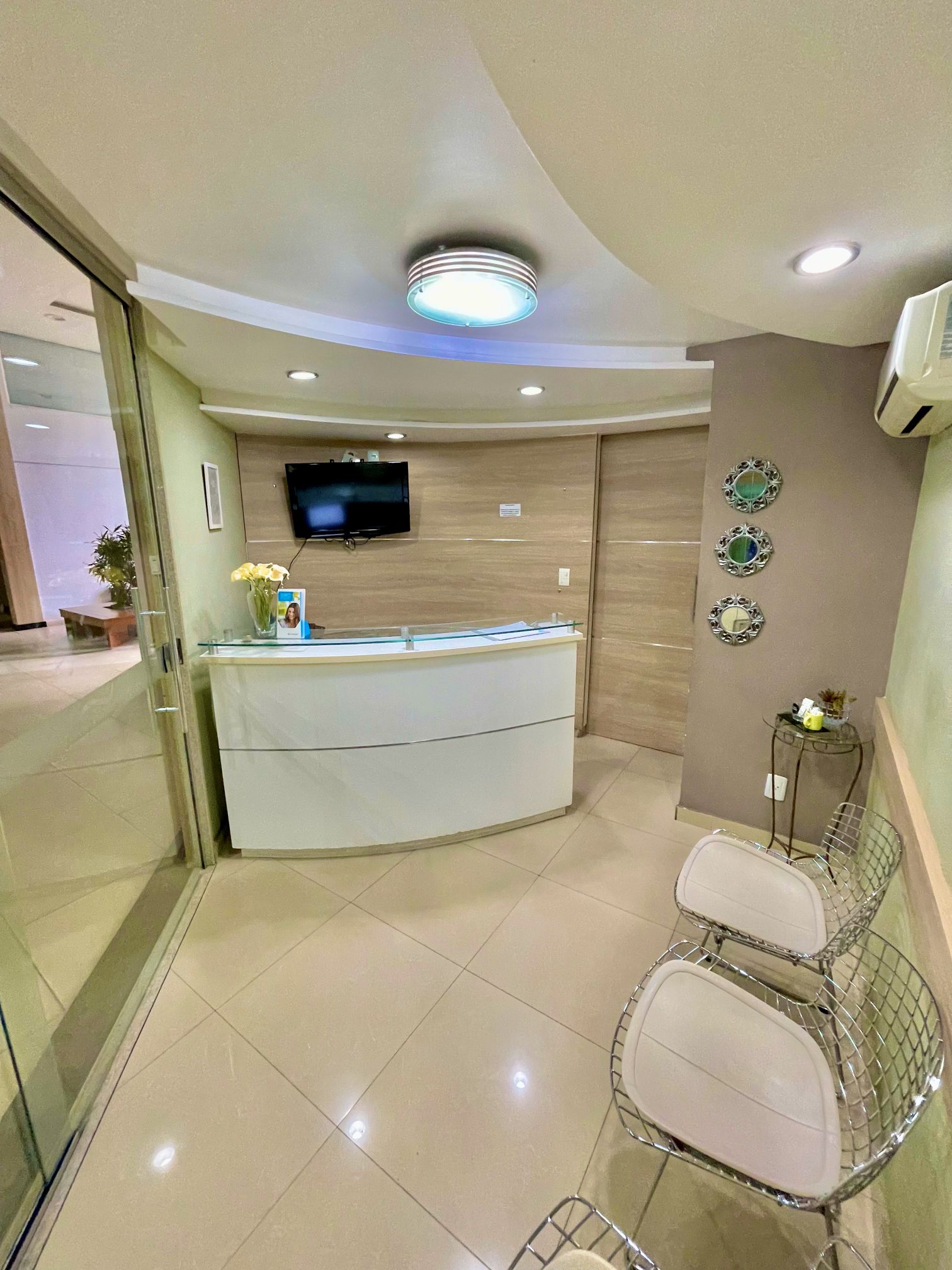 Hoje, temos duas unidades de clínica no mesmo andar do shopping, totalizando seis consultórios odontológicos, e uma equipe coesa e experiente que conta com 5 funcionárias e 12 dentistas especialistas, o que nos permite atuar em todas as especialidades dentro da Odontologia.